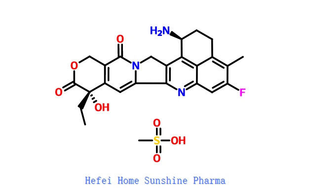 Exatecan mesylate হল একটি অর্ধ-সংশ্লেষিত, অ্যান্টিনিওপ্লাস্টিক কার্যকারিতা সহ ক্যাম্পটোথসিনের জল- দ্রবণীয় ডেরিভেটিভ।এক্স্যাটেকান মেসিলেট টোপোইজোমেরেজ আই এবং ডিএনএর মধ্যে ক্ল্যাভযোগ্য কমপ্লেক্স স্থিতিশীল করে এবং ডিএনএ ব্রেকগুলির পুনর্নির্মাণকে বাধা দেয়।, যার ফলে ডিএনএ প্রতিলিপি প্রতিরোধ করে এবং অ্যাপোপটোটিক কোষের মৃত্যু সৃষ্টি করে।এই এজেন্টের এনজাইমেটিক অ্যাক্টিভেশনের প্রয়োজন হয় না এবং এটি ক্যাম্পটোথেইসিন এবং অন্যান্য ক্যাম্পটোথেইসিন এনালগগুলির চেয়ে বেশি শক্তি প্রদর্শন করেExatecan Mesylate (DX8951f) একটি ক্যান্সার গবেষণার জন্য 2.2 μM (0. 975 μg/ mL) এর IC50 মান সহ একটি টোপোইজোমেরেস I ইনহিবিটার।